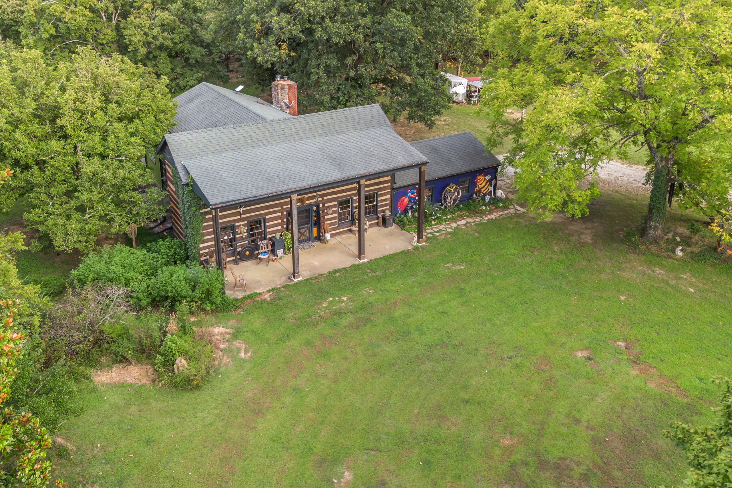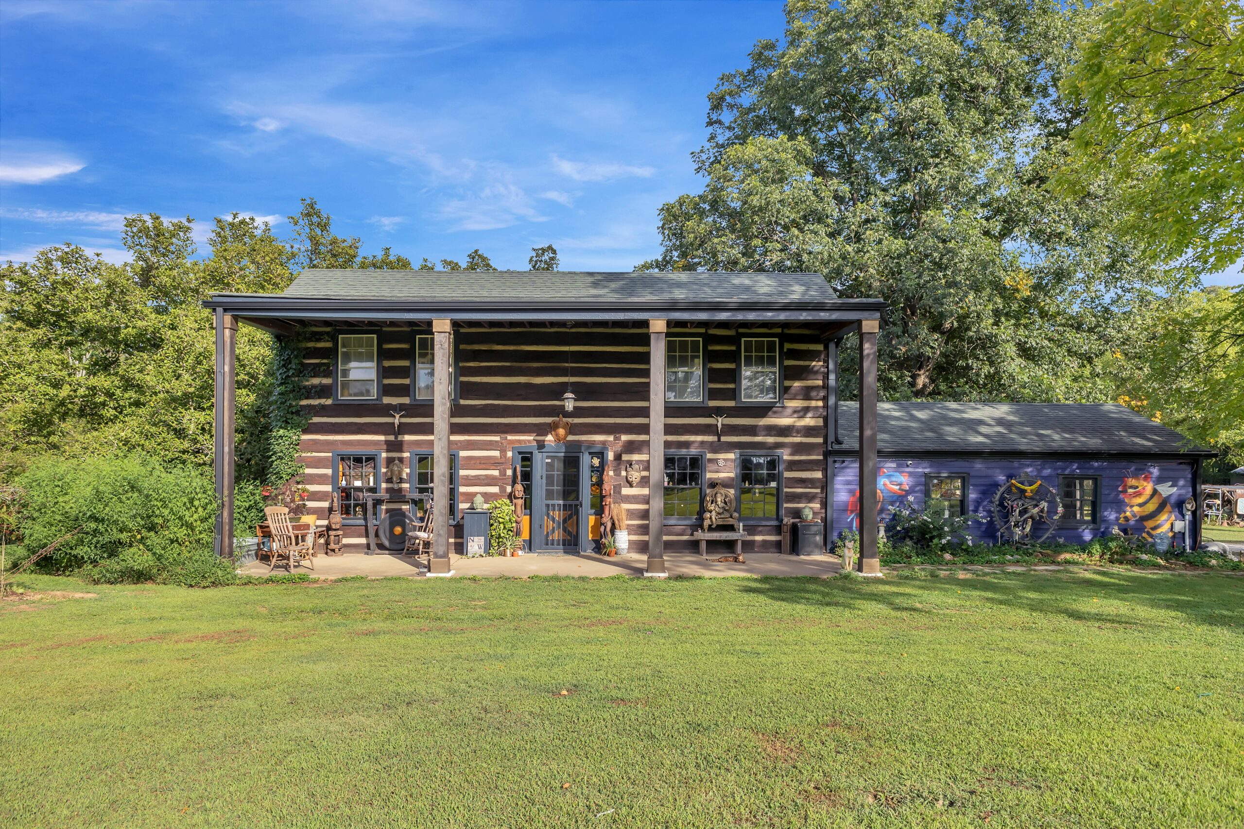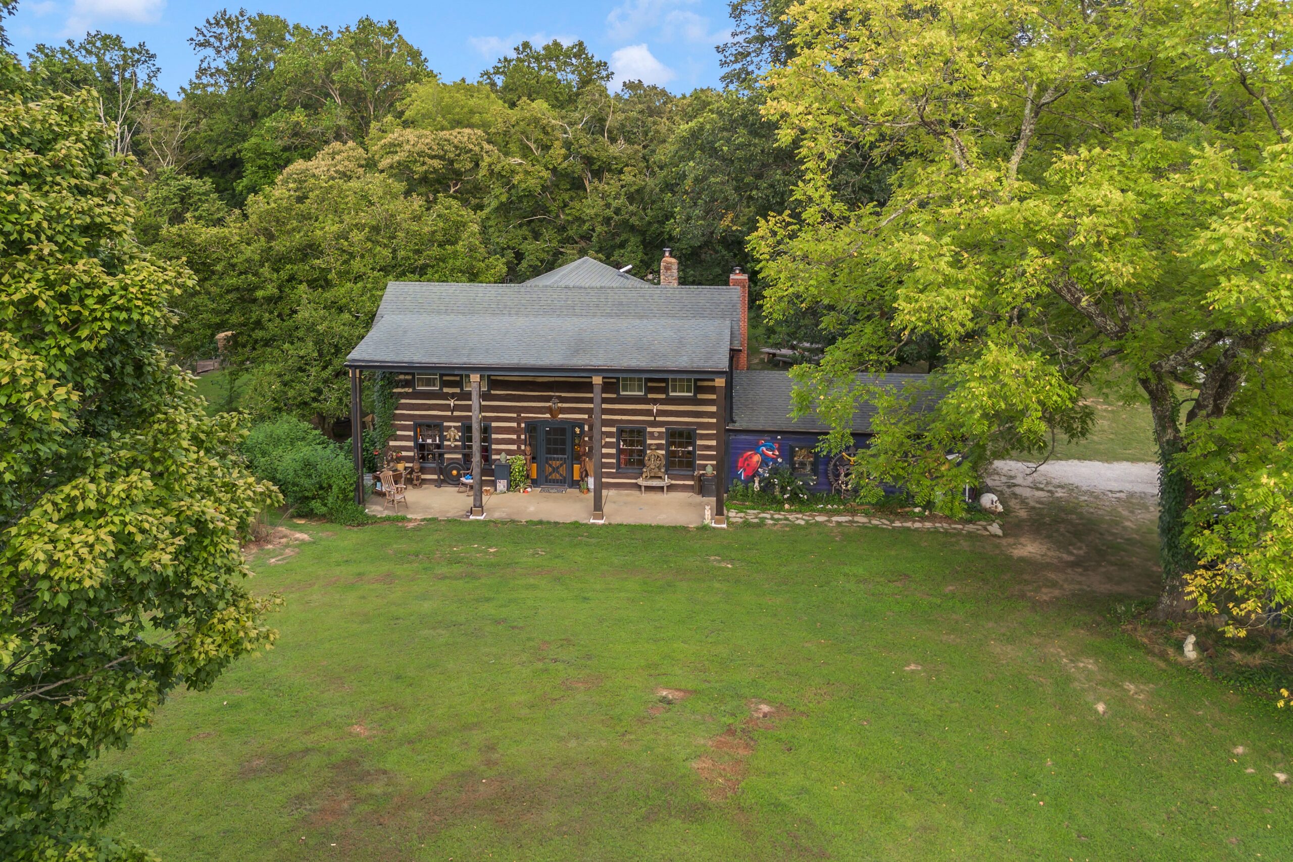A one-of-a-kind property — a 1797 Chestnut Log Cabin on 46.56 acres of pasture, hardwood forest, springs and ponds — blending preserved history with modern function, plus income-producing hospitality & equestrian ops.